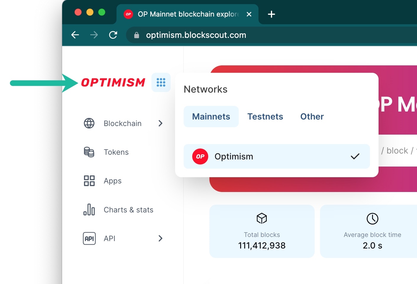 Many projects still use the previous Blockscout UI, and info below relates to the previous v1 UI. We encourage projects to upgrade to the new UI.Top Menu