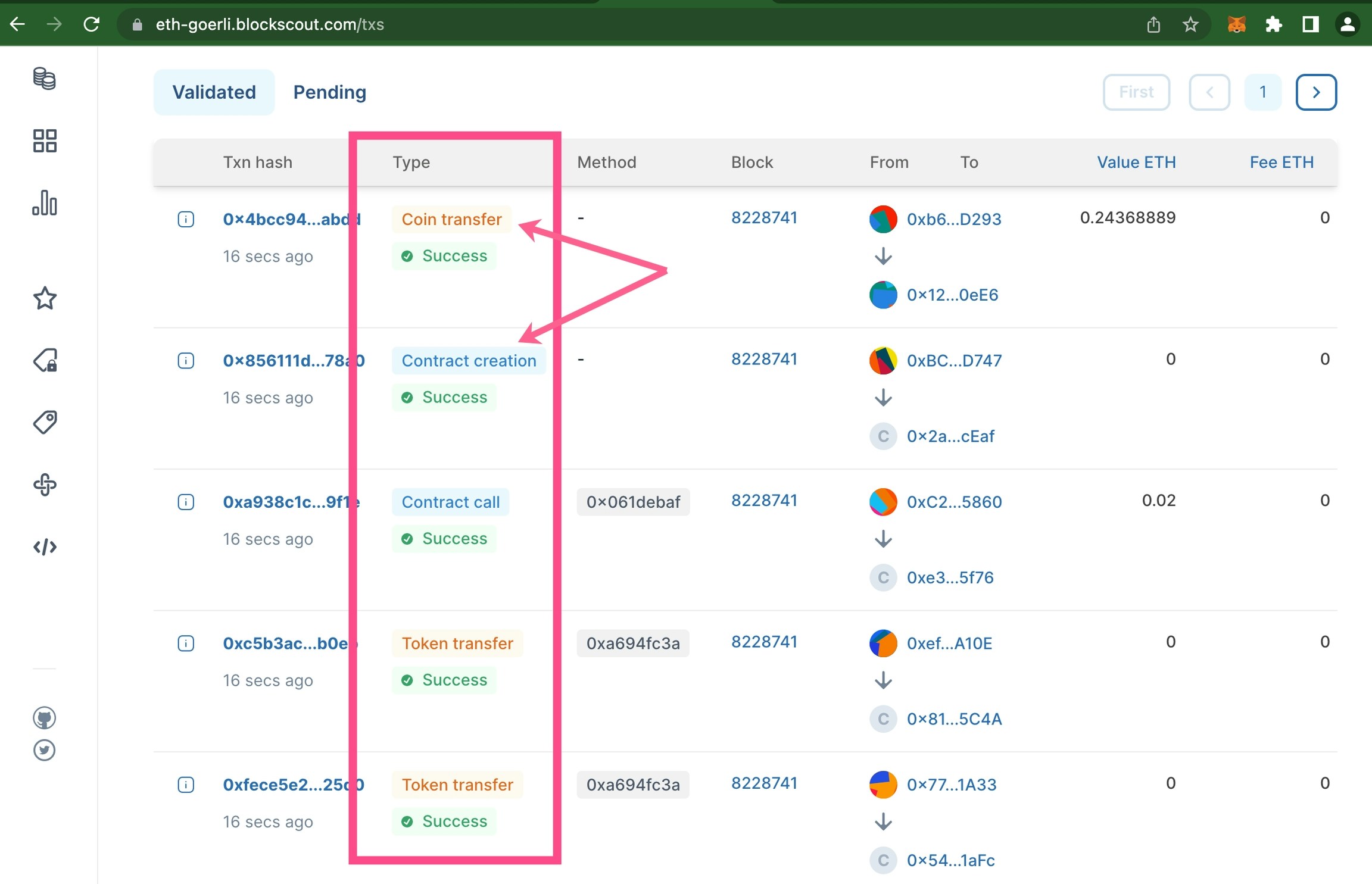 - Transaction: A contract call where the contract has not yet been identified by Blockscout.